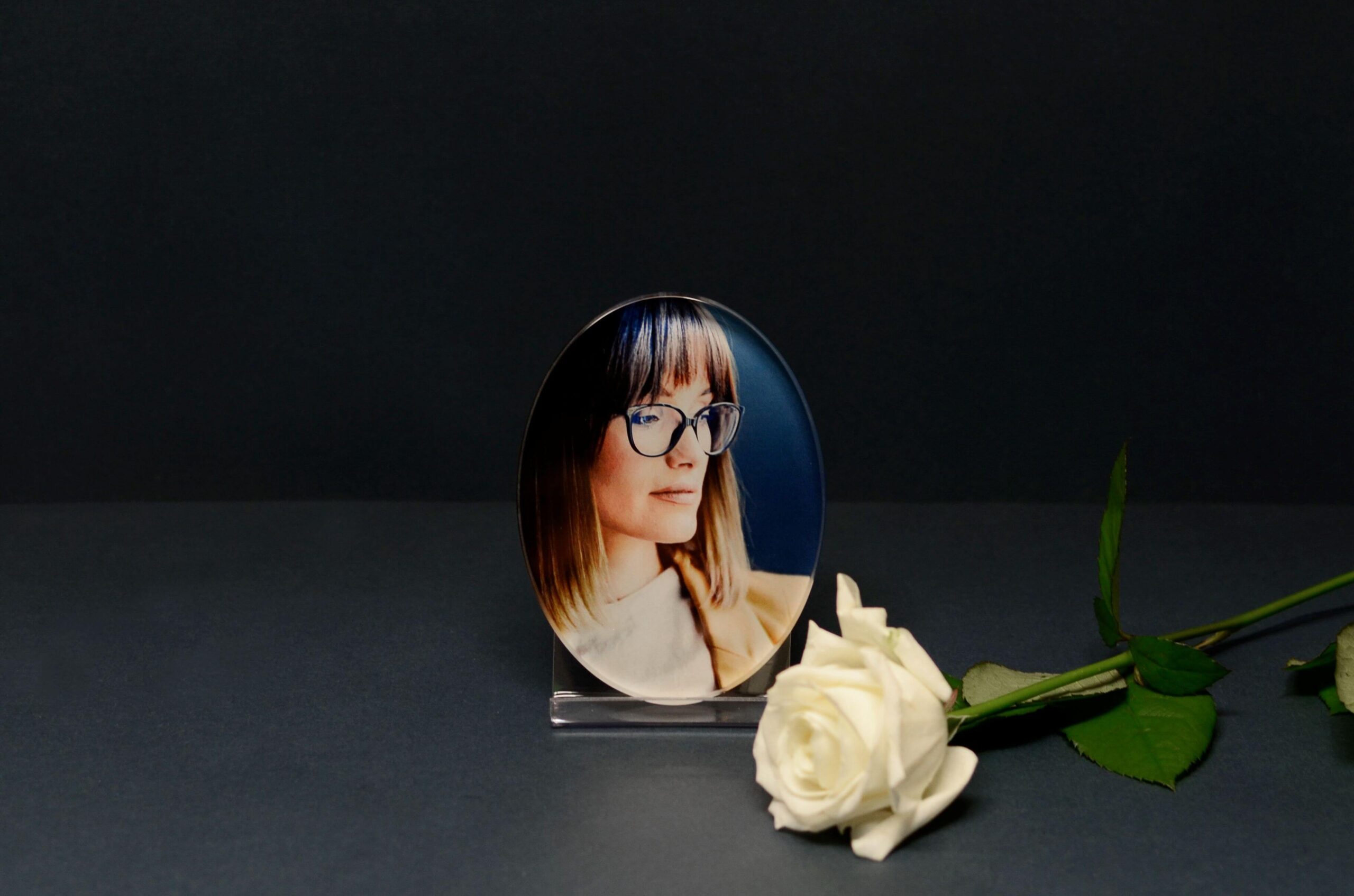 Kryształowe płytki nagrobne łączą w sobie nowoczesny wygląd z elegancją i nutą tradycji. Łagodne krawędzie nadają płytkom artystyczny i harmonijny wygląd tworząc wyjątkową formę upamiętnienia bliskiej osoby. Owalne fotokryształy charakteryzują się wysoką przezroczystością i połyskiem nadając zdjęciom głębię i wyrazistość.